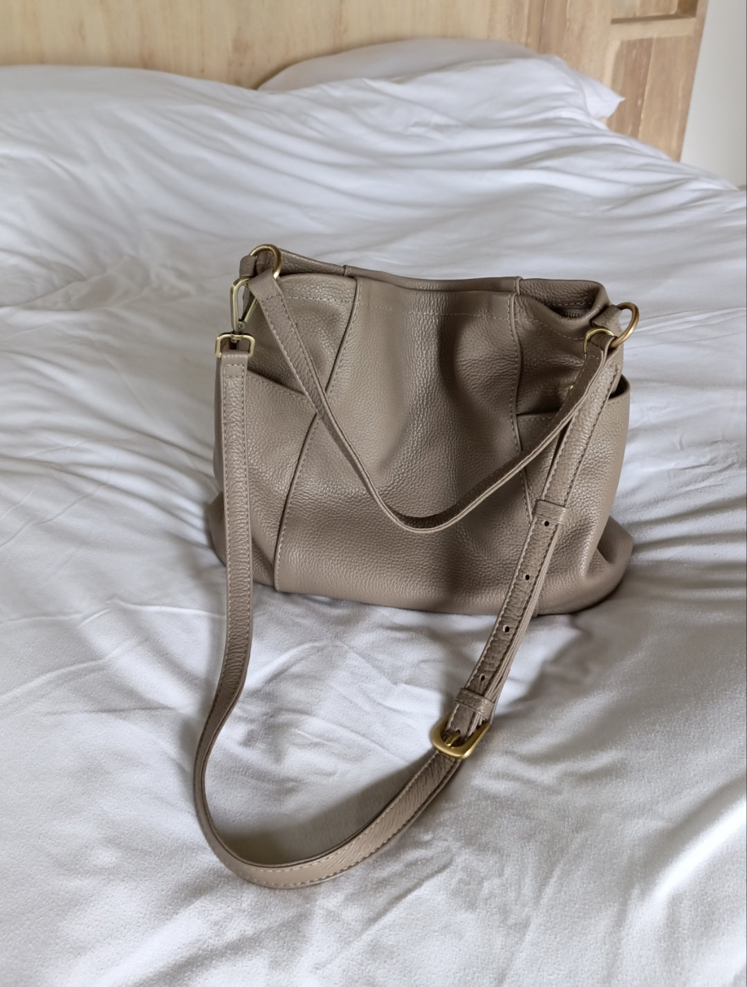 - hardware: gold-toned metal